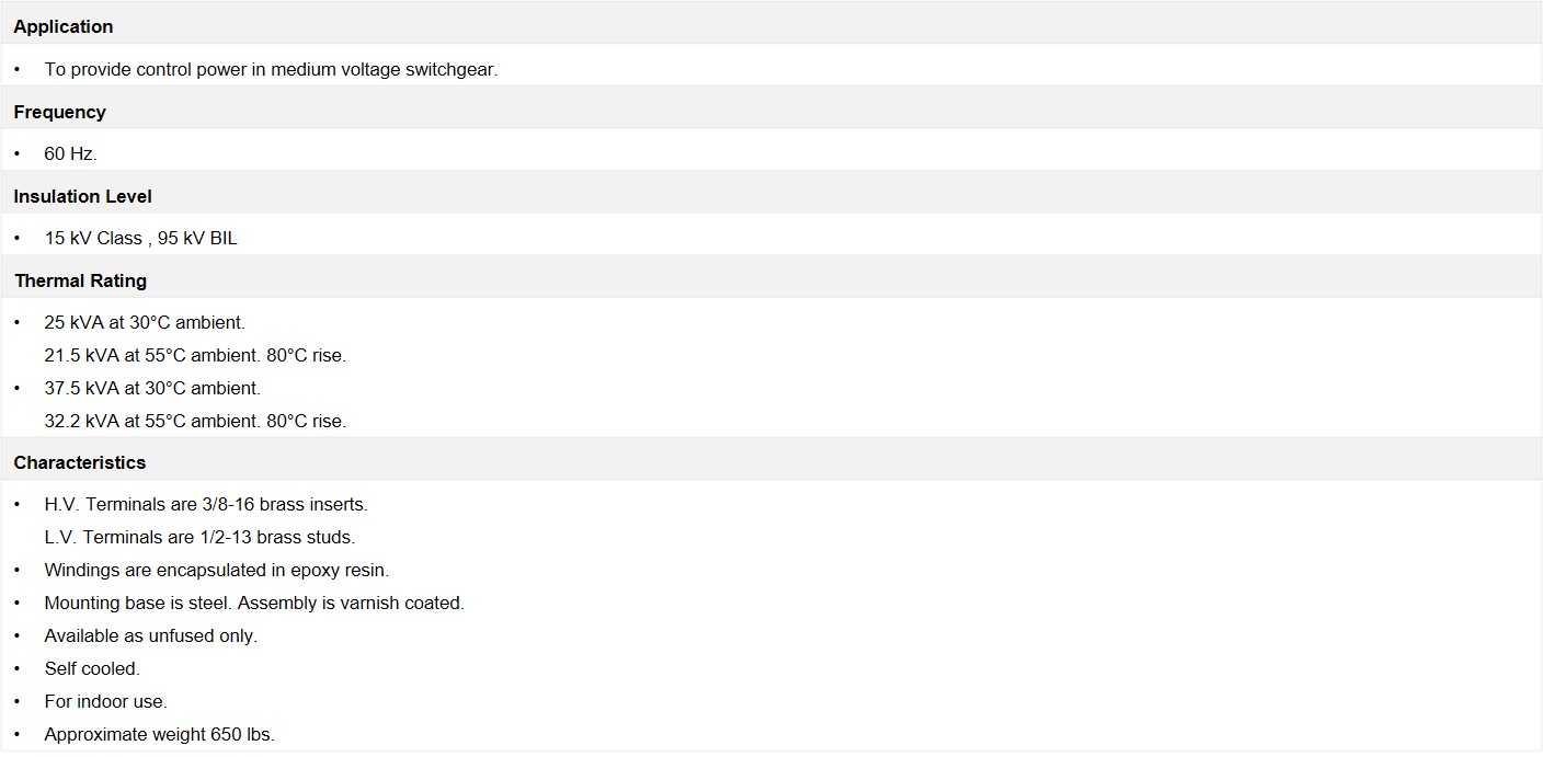 GE,Model CPTD5-95-25,Medium Voltage Control Power Transformers