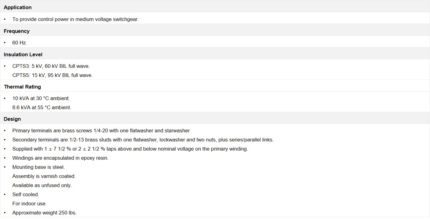 GE,Model CPTS3-60-10,Medium Voltage,Control Power Transformer