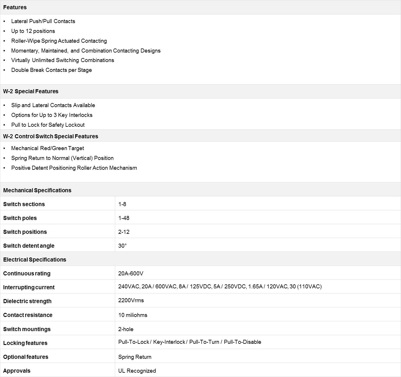 - Electroswitch > Utility power switches relays > Manual Standard Instrument and Control Switches > Series Type W-2